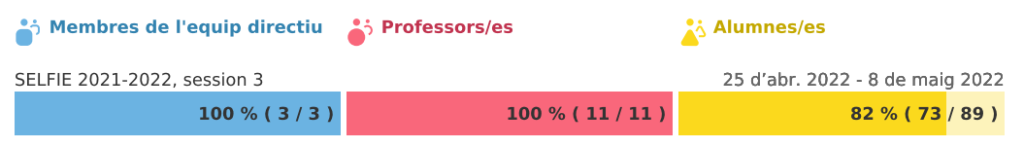 Durant el tercer trimestre, a través de l’eina Selfie, s’ha passat un qüestionari a l’equip directiu, al professorat i a l’alumnat del centre per tal de fer una diagnosi del centre a nivell digital.