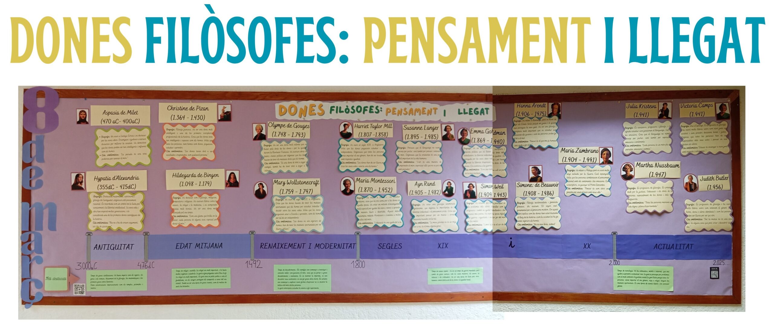 Al passadís de la planta baixa podreu veure una línia del temps amb noms i petites biografies d’algunes d’aquestes filòsofes i, si teniu curiositat per saber-ne més, accediu al codi QR. Els alumnes de CFI 4 són els que ens “han regalat” aquesta exposició.