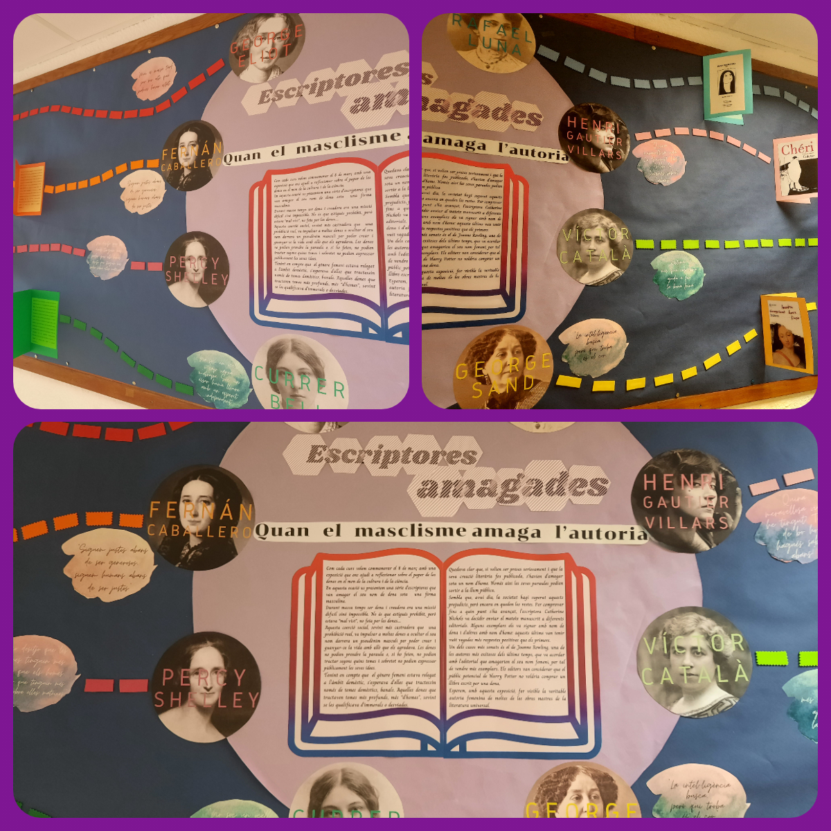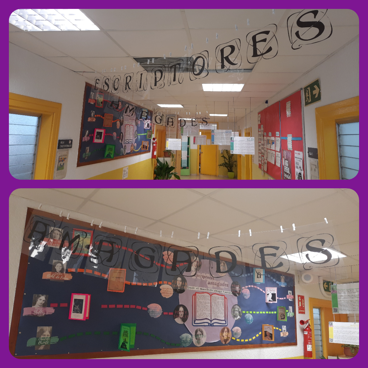 Podeu visitar-la al passadís de la planta baixa, i conèixer qui s’amagava rere grans noms (masculins) de la literatura universal. També veureu que hi ha codis QR que amplien la informació dels panells de cada autora, per a que pugueu saber-ne més, a través dels vostres telèfons mòbils.