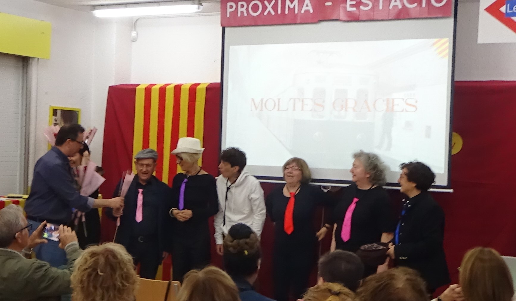 I finalment, divendres 25 vam celebrar la nostra gran diada. A les 10 h vam donar el tret de sortida amb una presentació molt original de novetats literàries. Sota el títol “Pròxima estació: lectura”, vam emprendre un viatge imaginari en metro, tren, vaixell i avió, fent parada a diferents “estacions de llibres”. A cada parada, descobríem una novel·la a través de la teatralització d’un fragment interpretat amb molt d’entusiasme.