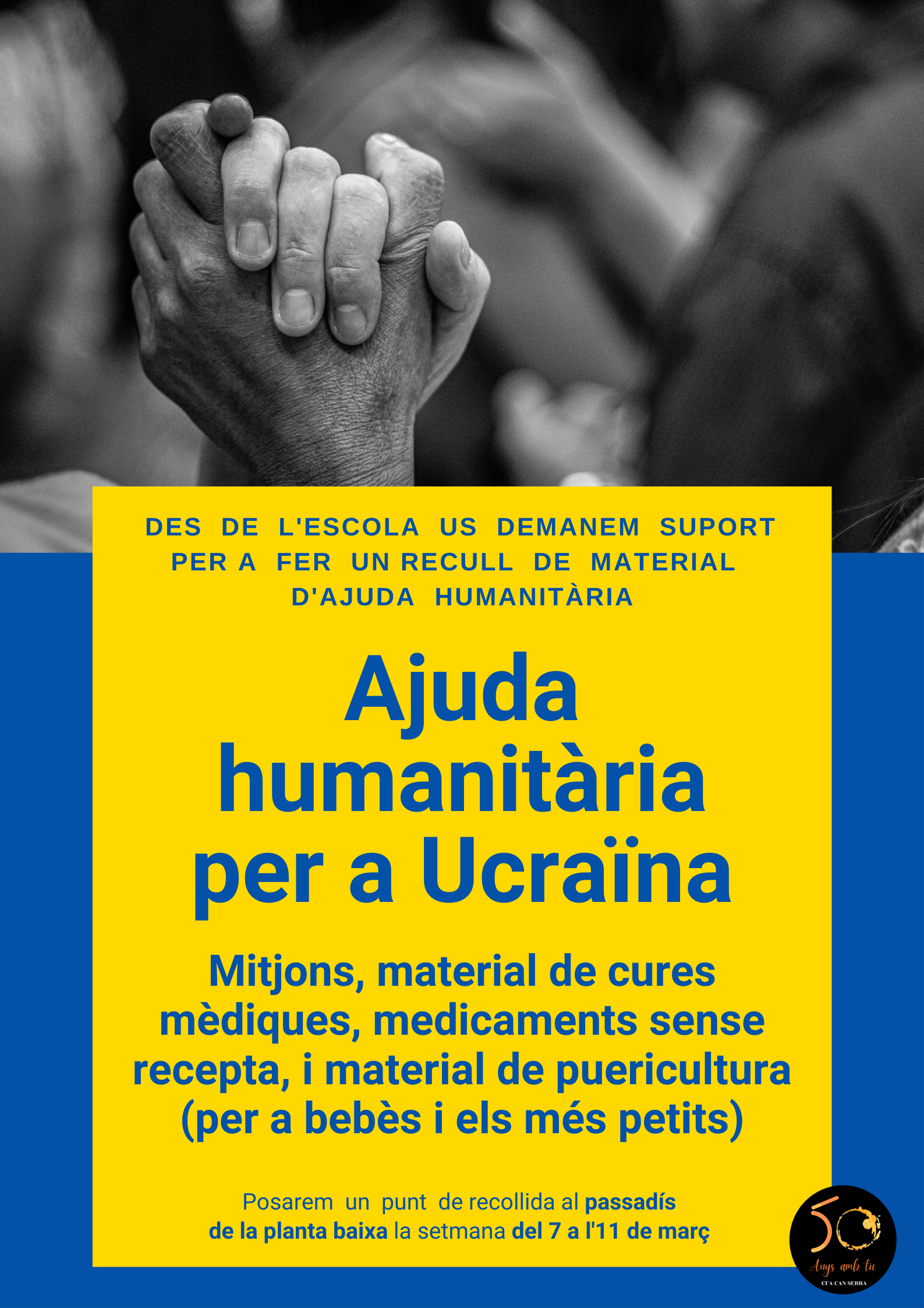 Profundament afligits perquè altra vegada la sense raó governi el món, hem preguntat a una de les nostres alumnes ucraïneses de quina manera els hi podem donar suport. Ens proposa la recollida d’alguns productes concrets que costa més de trobar, en concret aliment i roba d’abric per a nadons, material de cures i mitjons per a adults.