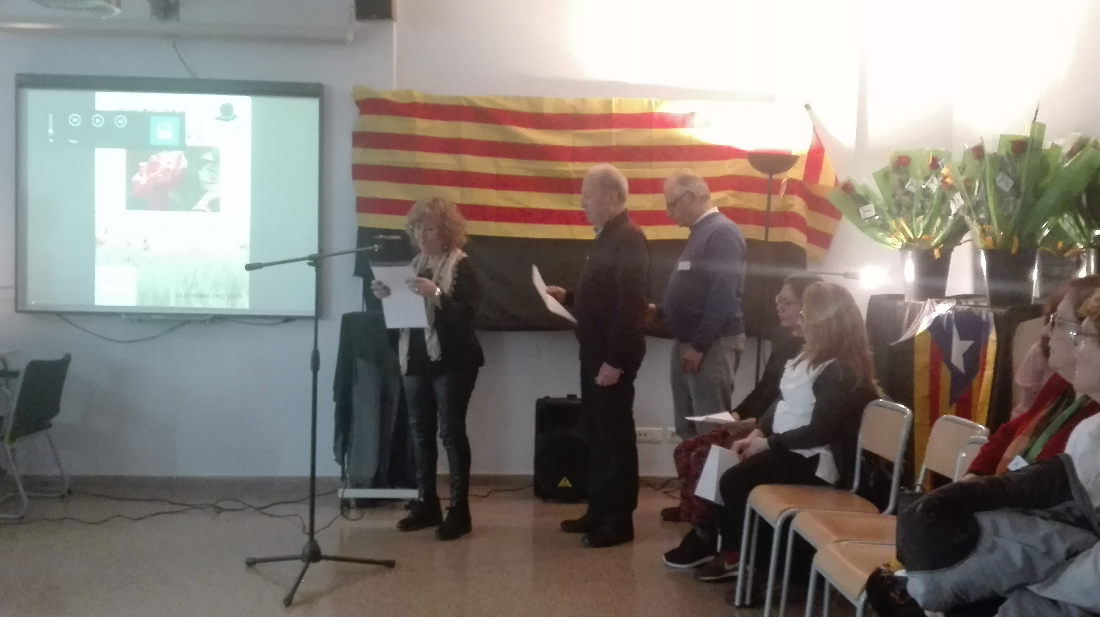 La celebració de Sant Jordi va començar amb la lectura de poesia en anglès, català i castellà per part de l’alumnat. 33 alumnes de tots els ensenyaments ens van acostar a poetes i poetesses com Joana Raspall, Josep Genés, Anna Dodas, Rosa Leveroni, Martí i Pol o Joan Fuster, passant també per Bob Dylan i sense oblidar la lectura de poemes propis.