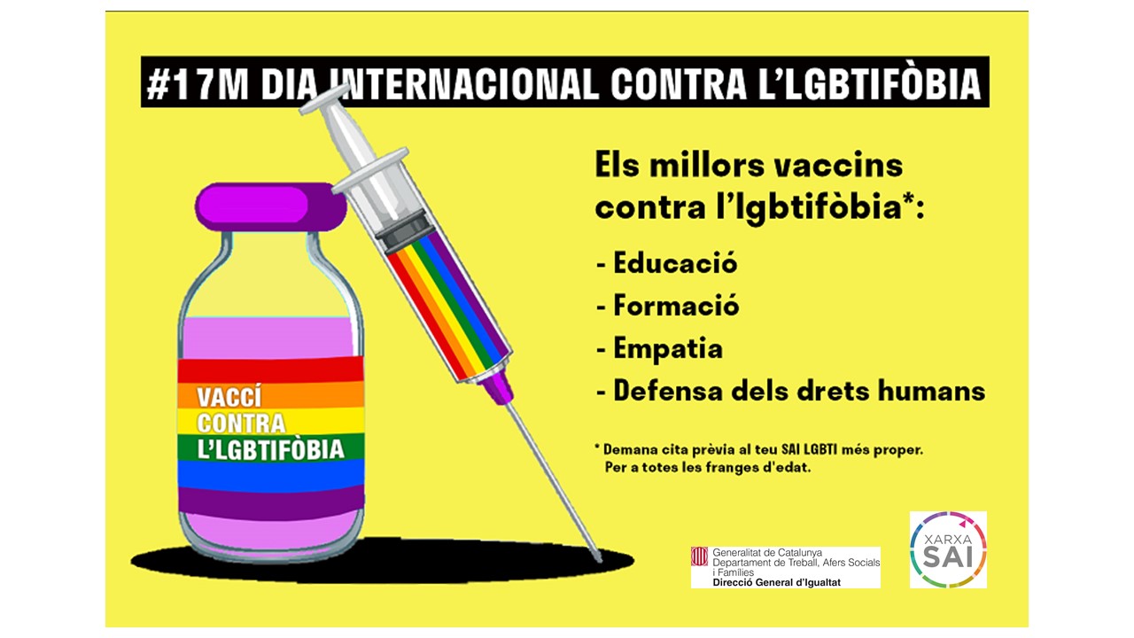 El Dia Internacional contra l’LGBTI-fòbia és el 17 de maig. El seu objectiu és conscienciar sobre les violències i discriminacions que pateixen les persones del col·lectiu LGBTI+.