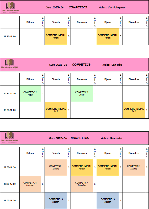 S’imparteixen en quatre nivells: COMPETIC INICIAL, COMPETIC 1, COMPETIC 2 i COMPETIC 3.