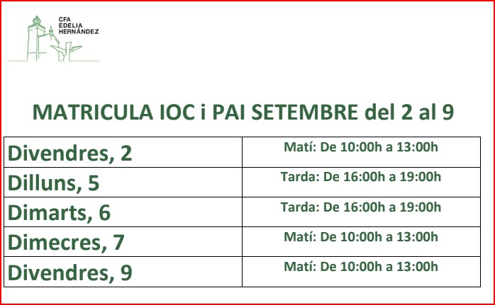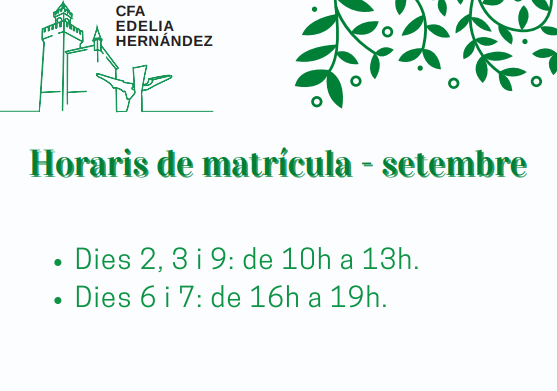 Horari de matrícula al setembre