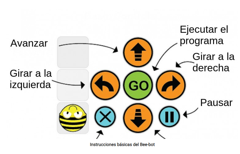Los Bee-Bot aceptan hasta un máximo de 40 instrucciones o comandos del tipo adelante, atrás, girar a la izquierda y girar a la derecha, que se programan mediante unas intuitivas teclas de dirección. Una vez programada la secuenciación elegida, simplemente hay que pulsar en la tecla GO para que el Bee-Bot ejecute el programa. El robot parpadeará una vez y emitirá un leve sonido al término de cada instrucción, Al término de esta el robot indicará que ha terminado parpadeando 3 veces.