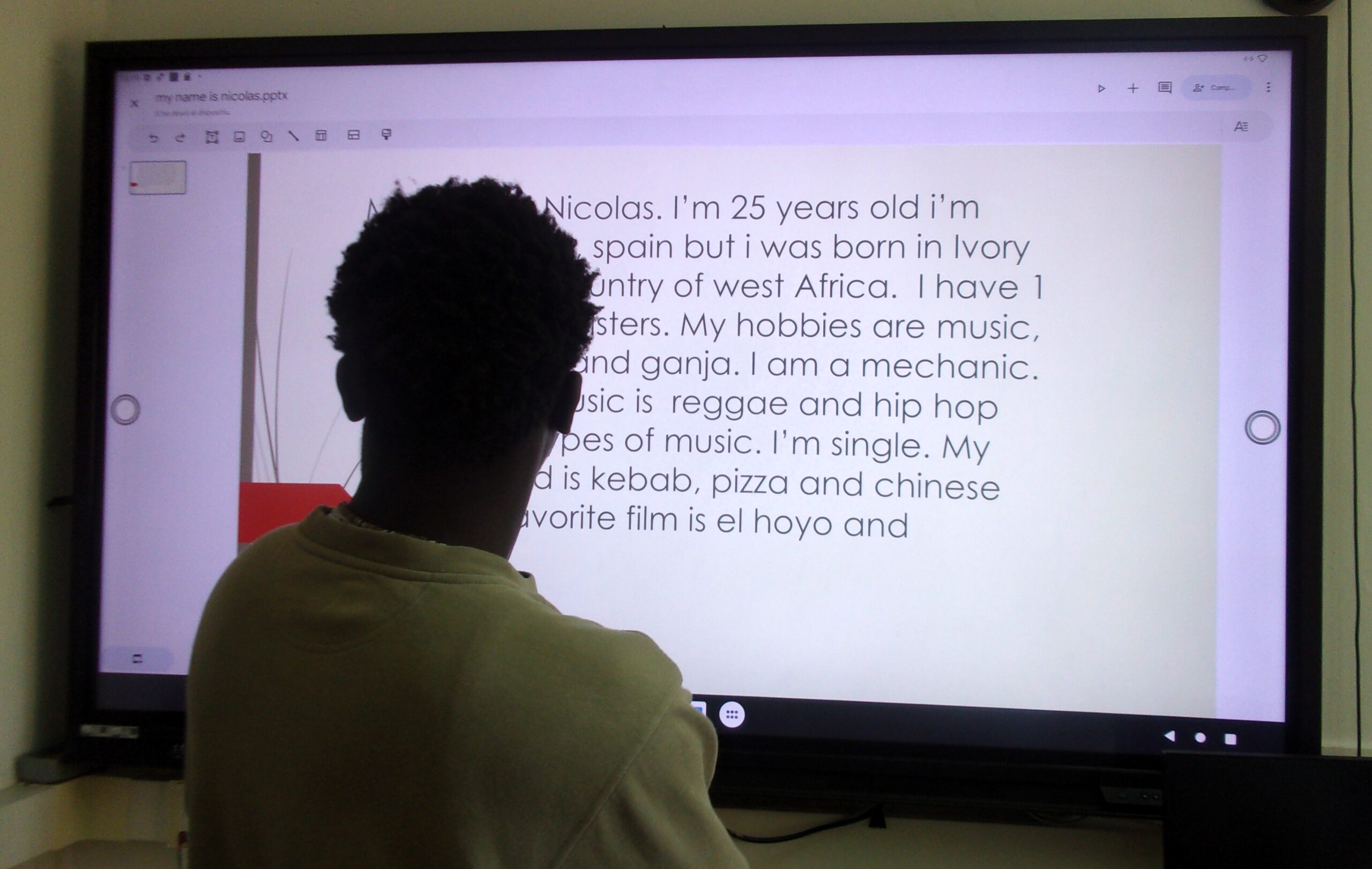 Per exemple el Renato ens va explicar com se celebra el dia de la Independència a Albània. El Sergio ens va parlar sobre les seves aficions en anglès.