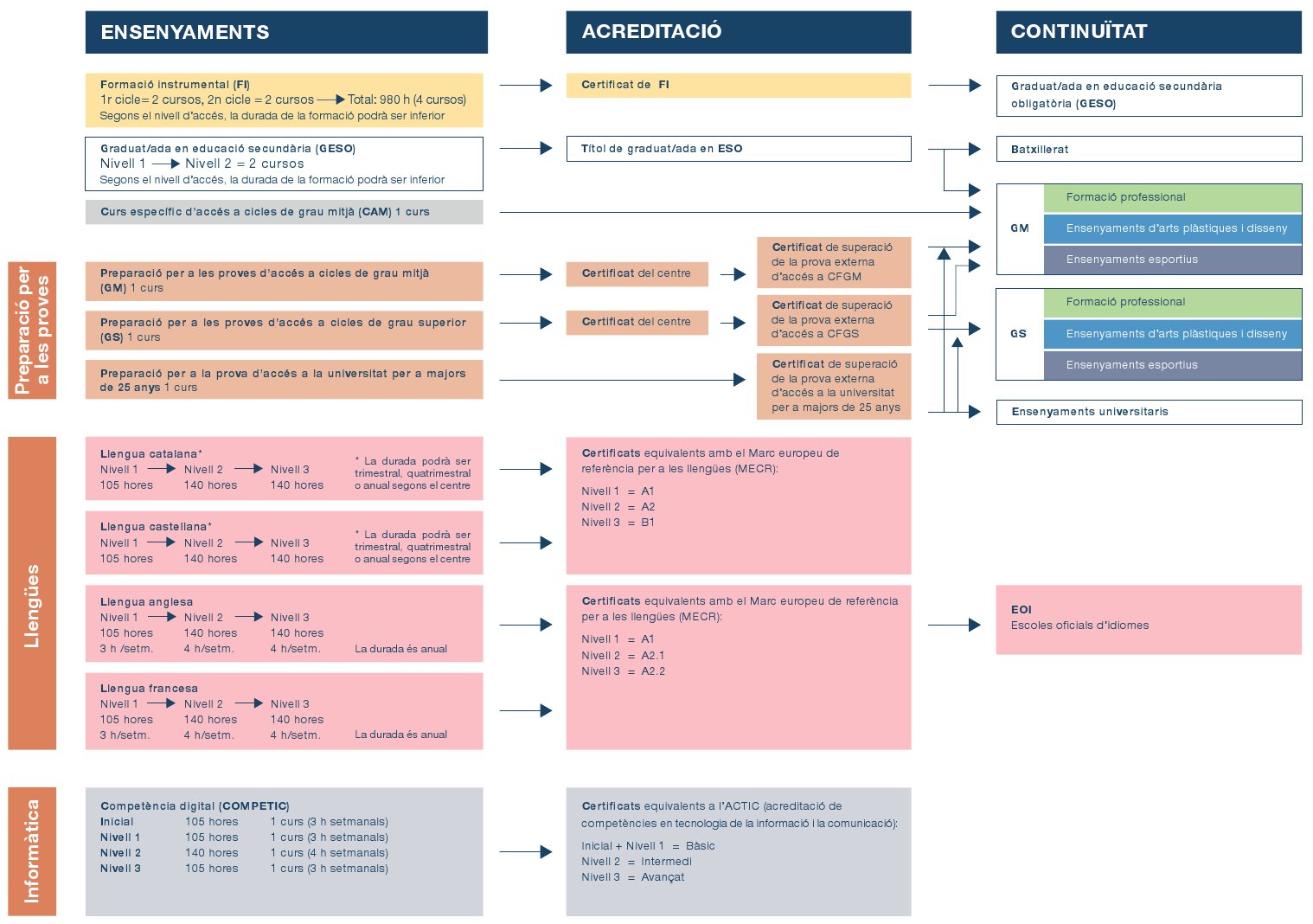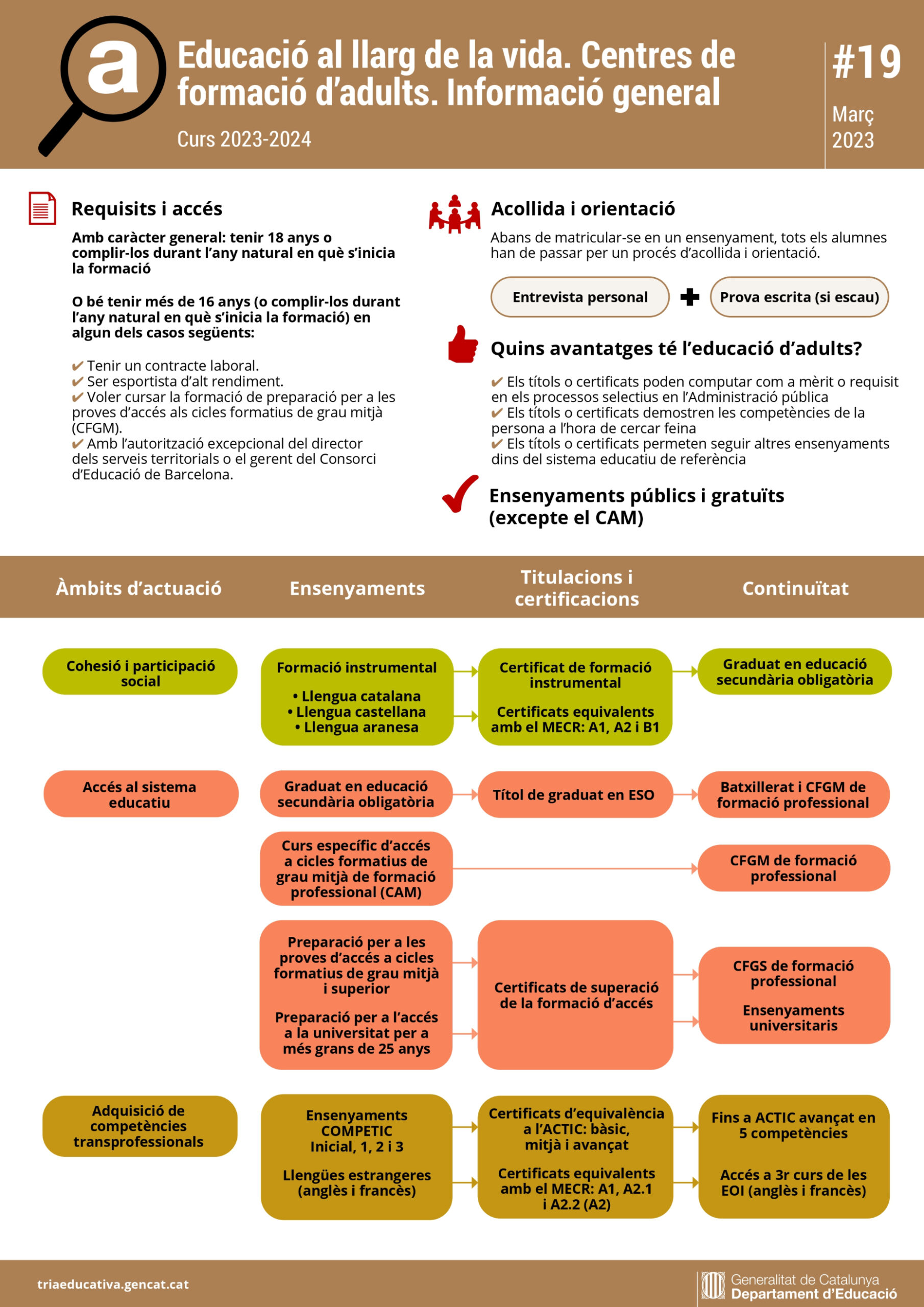 L’oferta educativa general dels centres de formació d’adults del Departament d’Educació és la següent: