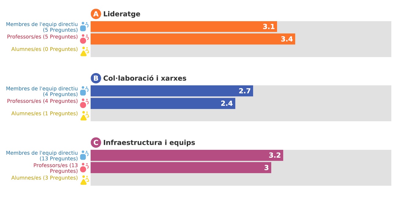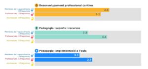 Selfie és una eina gratuïta, personalitzable i molt fàcil d’utilitzar, creada per la Comissió Europea, per ajudar als centres educatius a fer una diagnosi del seu grau d’implementació de les tecnologies digitals. L’eina permet crear una enquesta per a alumnes, professorat i equip directiu de manera senzilla. No obstant, tenint en compte el context del centre, la mateixa comissió va valorar que l’enquesta només la duria a terme l’equip directiu i el claustre de professors. De la mateixa manera que es van elegir les preguntes més adients i específiques per a aquest context. Aquests han estat els nostres resultats: