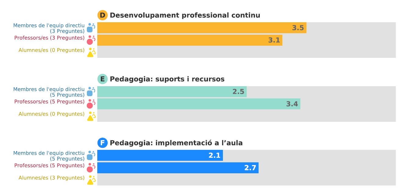 Entrevistes als professionals del centre: Durant tot el procés de diagnosi, s’ha tingut en compte la opinió dels docents pel que fa al desenvolupament d’habilitats digitals amb els alumnes. Ja que es tracta d’un context diferent i on les aules, grups i oportunitats d’aprenentatge es veuen limitades pel context, per la vida diària i l’estat emocional de l’alumnat.