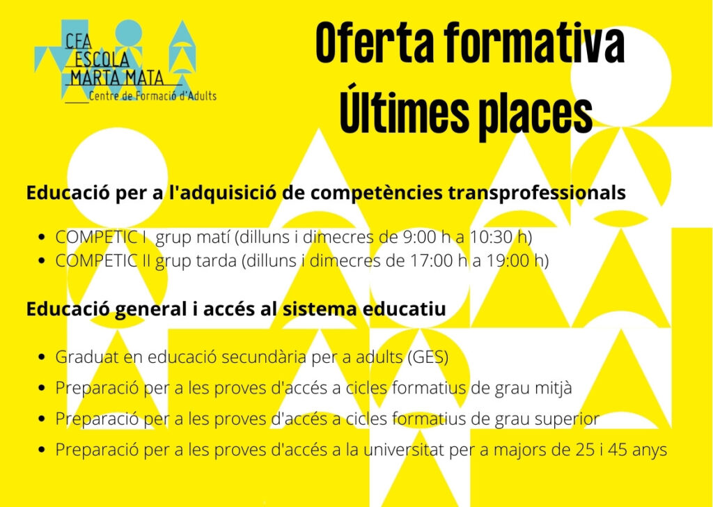 Ja podeu consultar les llistes definitives de preinscripció per al curs 2022-2023. Llista amb baremació definitiva Alumnes assignats al centre per ensenyaments Alumnes amb llista d’espera Nota: les persones admeses rebran un correu electrònic amb el dia i l’hora que han de venir a matricular-se.