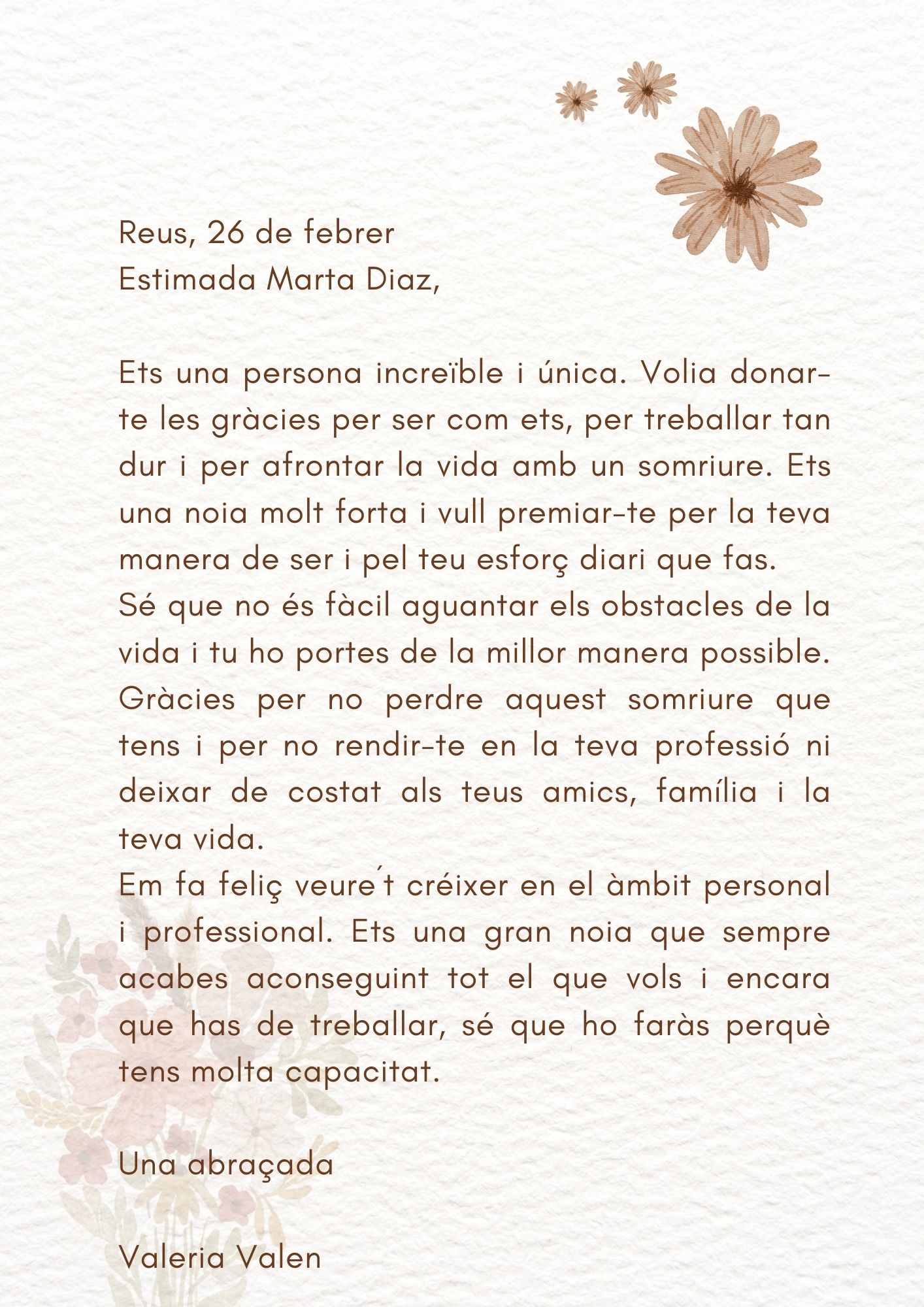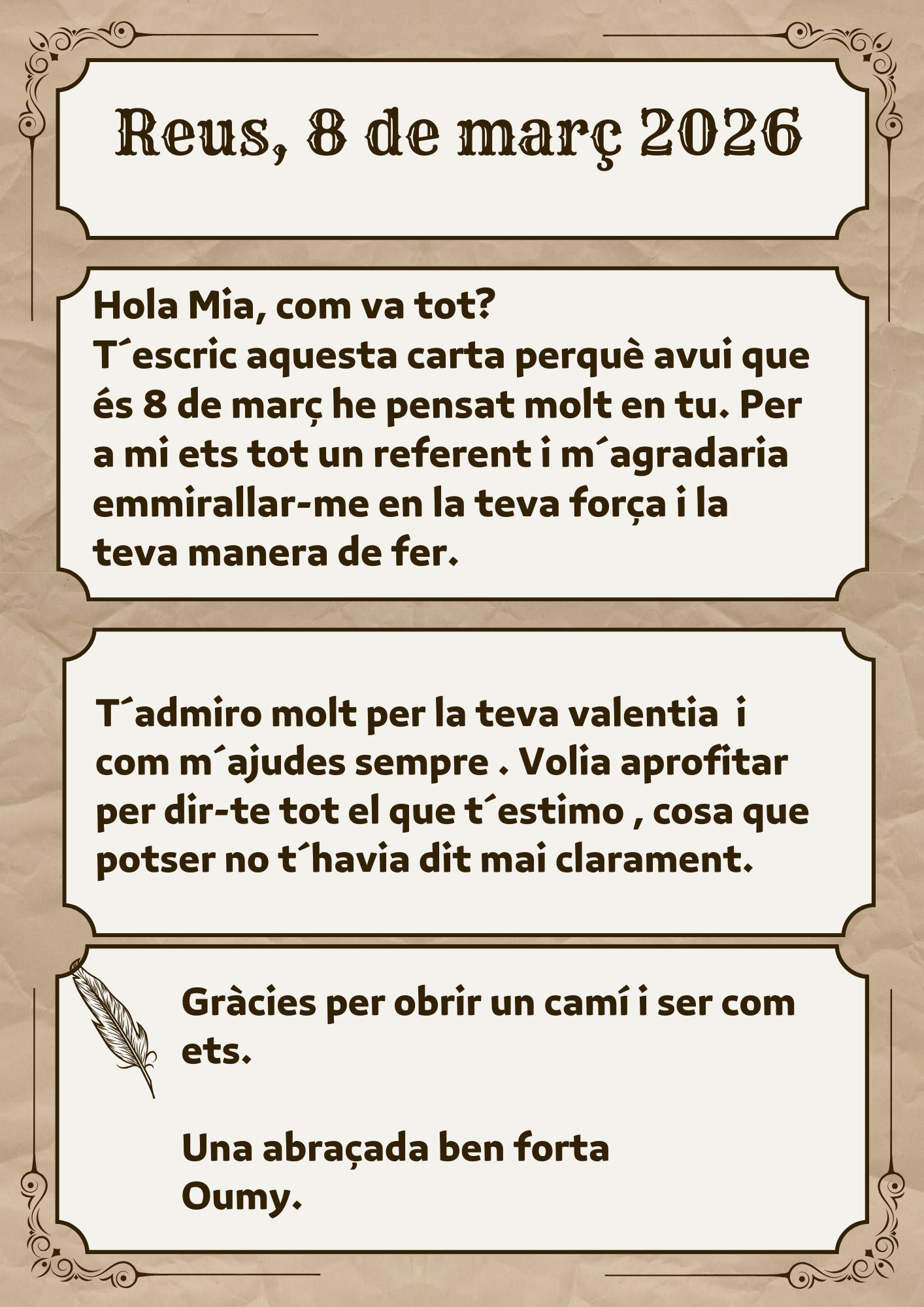 L’alumnat del Curs d’Accés a Cicles Formatius de Grau Superior (CAS) han escrit una carta a aquella dona que consideren essencial en la seva vida, la seva referent, amb qui els agradaria emmirallar-se, a qui li dirien coses que encara no li han dit…