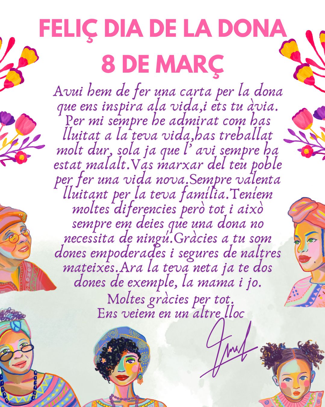 El 8 de març recorda que és “un dia en el qual es ret homenatge a les dones que des de tots els racons del món ens han precedit i han obert el camí per aconseguir una societat més justa i igualitària.