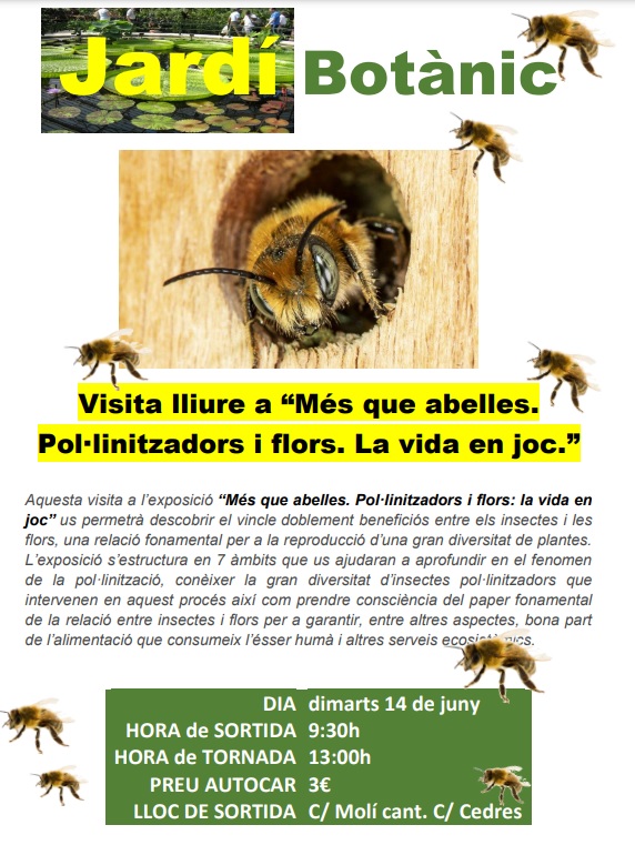 Pel dimarts 14 de juny, el centre ha preparat la sortida final de curs. Anem al Jardí Botànic i amb autocar! (3 euros). Farem una visita lliure de l’exposició ““Més que abelles. Pol·linitzadors i flors. La vida en joc” i gaudirem d’un entorn privilegiat durant… Llegeix més»
