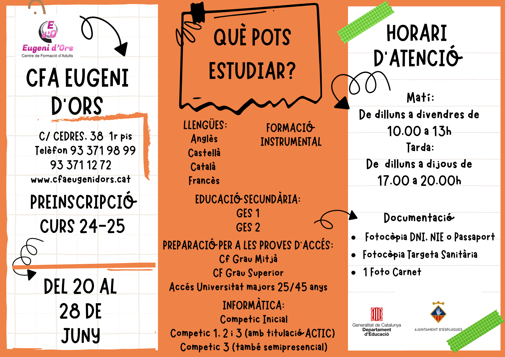 Què pots estudiar? Curs 24-25 Si entreu a l’article trobareu el quadre resum en gran amb aquesta informació: Què pots estudiar? Horari d’atenció