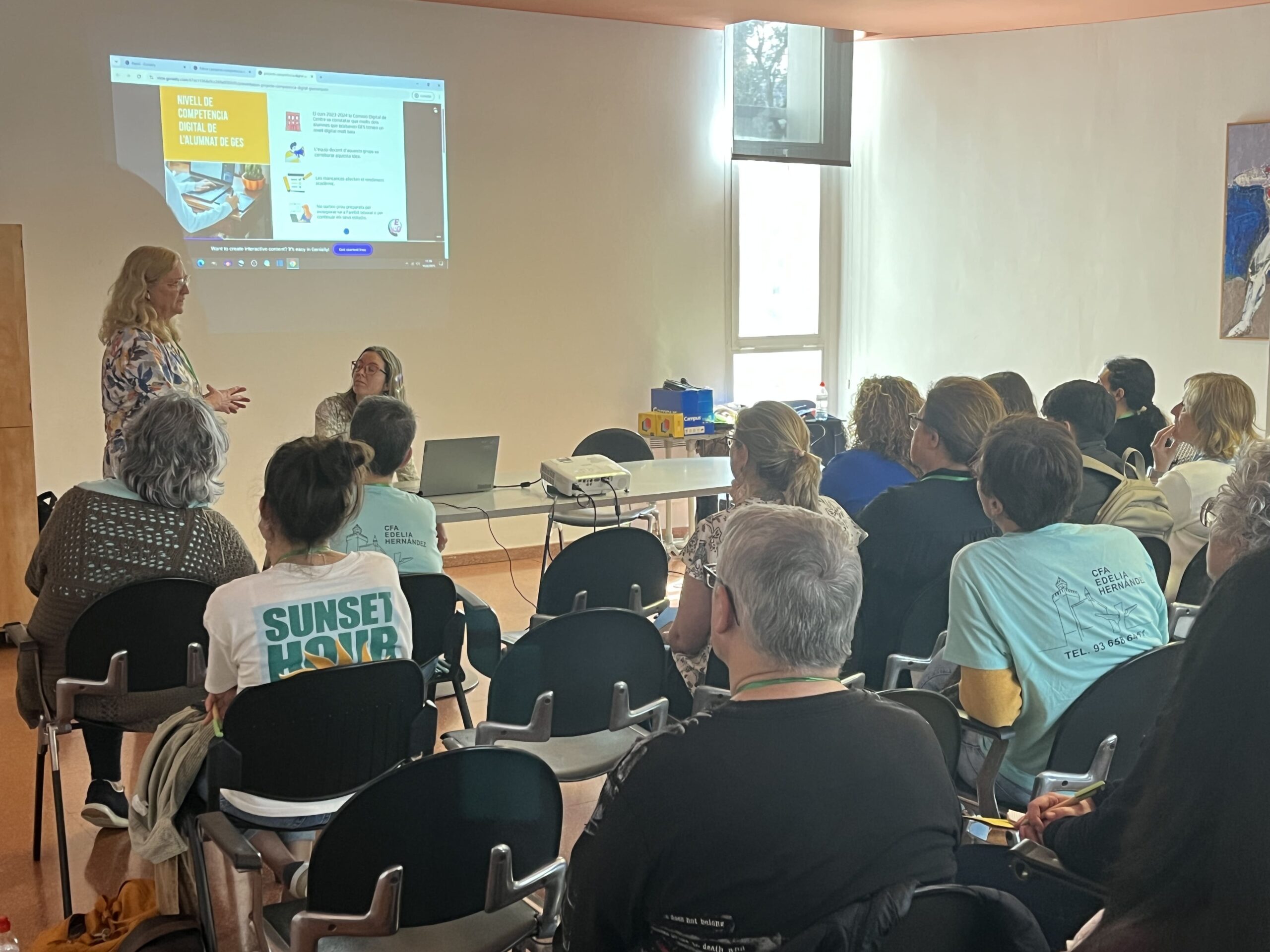 Nosaltres vam fer el taller de parelles lingüístiques i vam presentar com a bona pràctica, el projecte “Competència Digital al GES”.