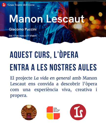 Aquest curs l’òpera entra a les nostres aules. El projecte “La vida en general” amb Manon Lescaut ens convida a descobrir l’òpera con una experiència viva, creativa i propera.