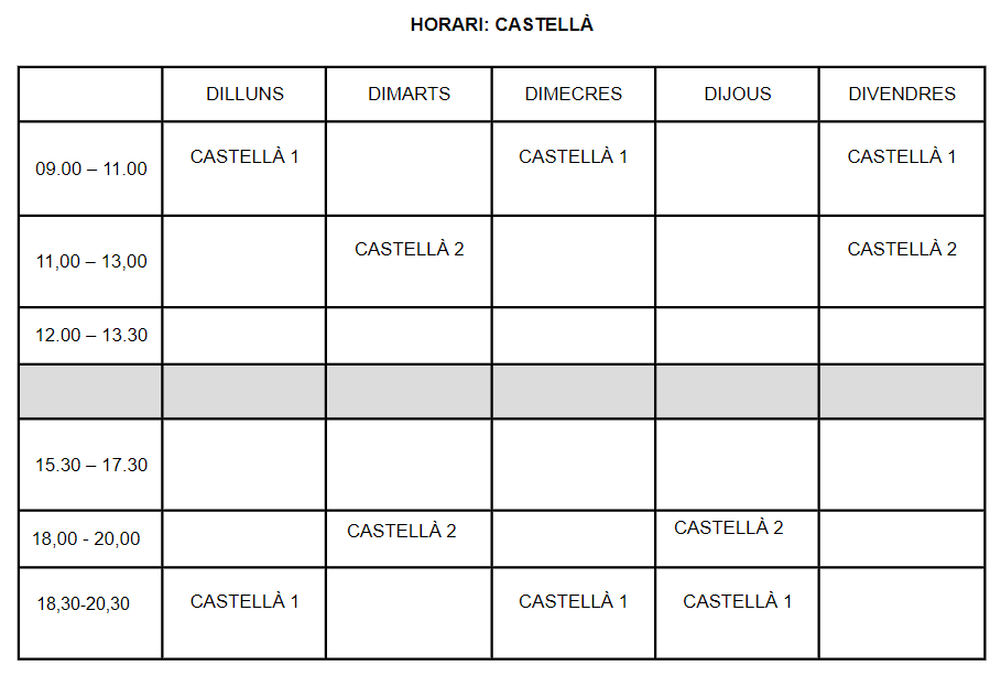 • El nivell 1 de llengua castellana, es correspon amb el nivell d’usuari/ària bàsic/a A1 d’acord amb el MECR.