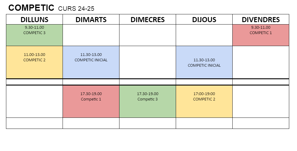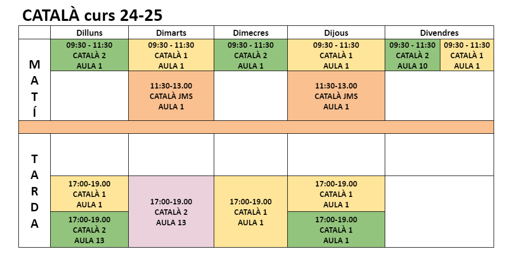 Ja tenim els horaris provisionals del curs vinent. Pot haver-hi algun canvi en funció de la matrícula però, si tot va bé, els horaris del curs 2024-2025 al CFA La Garrotxa seran els següents i els podreu consultar com sempre a la pàgina de l’ensenyament corresponent de la secció d’OFERTA FORMATIVA.