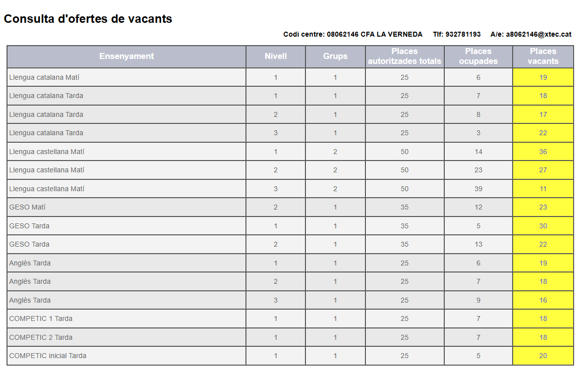 - En aquells ensenyaments que hi hagi vacants, també es pot matricular alumnat sense sol·licitud de preinscripció a partir del 4 de setembre.