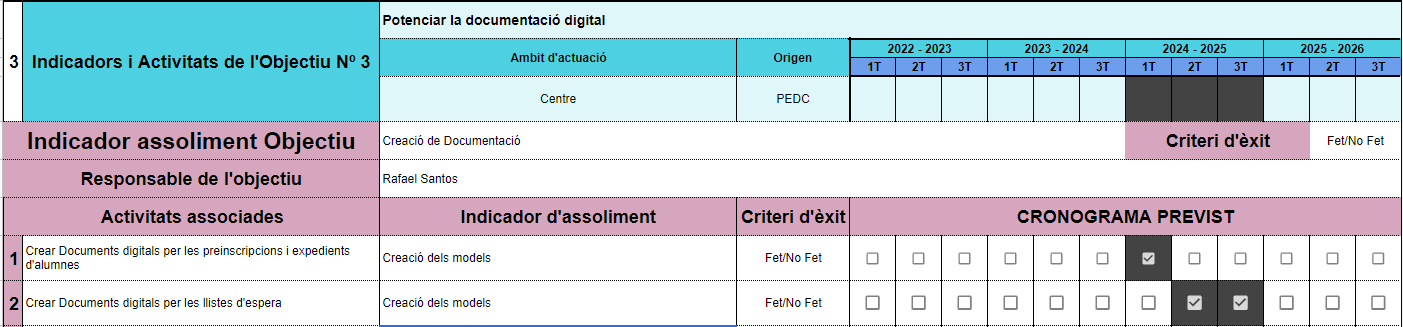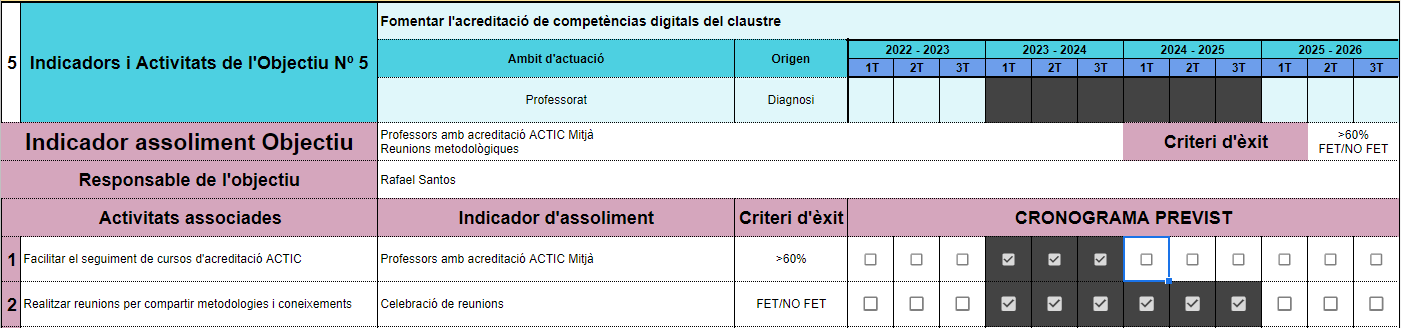 Fruit d’aquesta revisió, caldrà adaptar les accions planificades i, fins i tot, els objectius previstos. L’EDC no pot ser un document tancat sinó que ha de ser un document viu que vagi recollint l’avenç del centre i vagi adaptant-se al seu progrés.