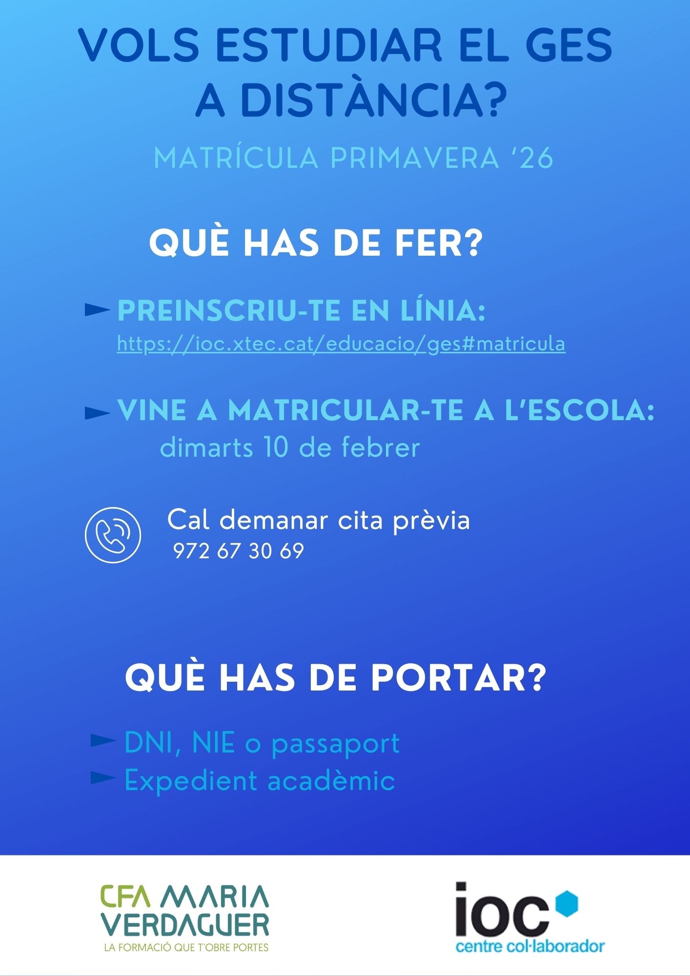 Publicat 28/01/2026 a 1414 &vegades; 2000 en NOVA MATRÍCULA IOC PRIMAVERA 26.