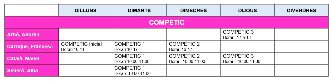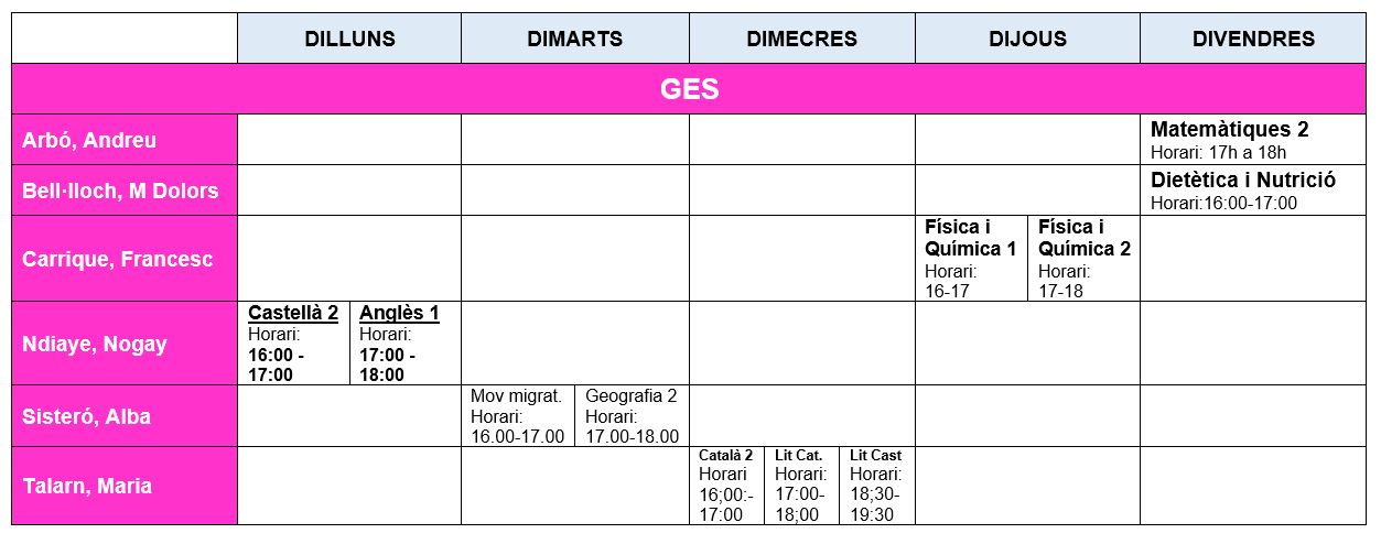Aquesta setmana iniciem de nou totes les classes del nostre centre. Hem concentrat les hores i tot es farà de forma telemàtica. Podeu veure tot seguit els horaris d’aquest trimestre. No obstant això, els vostres professors es posaran en contacte amb vosaltres per concretar-ho tot.