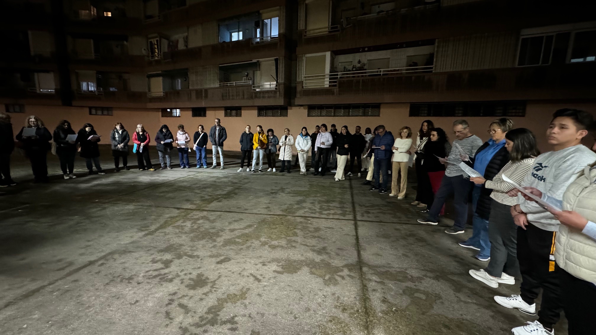 -Tot el centre va participar en el mural que vesteix una part del distribuidor i a les 19h va assistir a la lectura del manifest al pati.