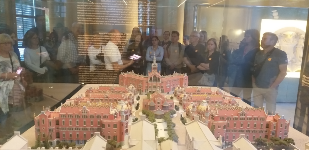 The first excursion with some of our English students is a visit to the modernist enclosure of Sant Pau’s Hospital. Doing it, we want to commemorate the centenary of the architect’s death. The place is amazing, with the tour you get a lot of interesting information and we also share a moment out of the school practising the language, what else?