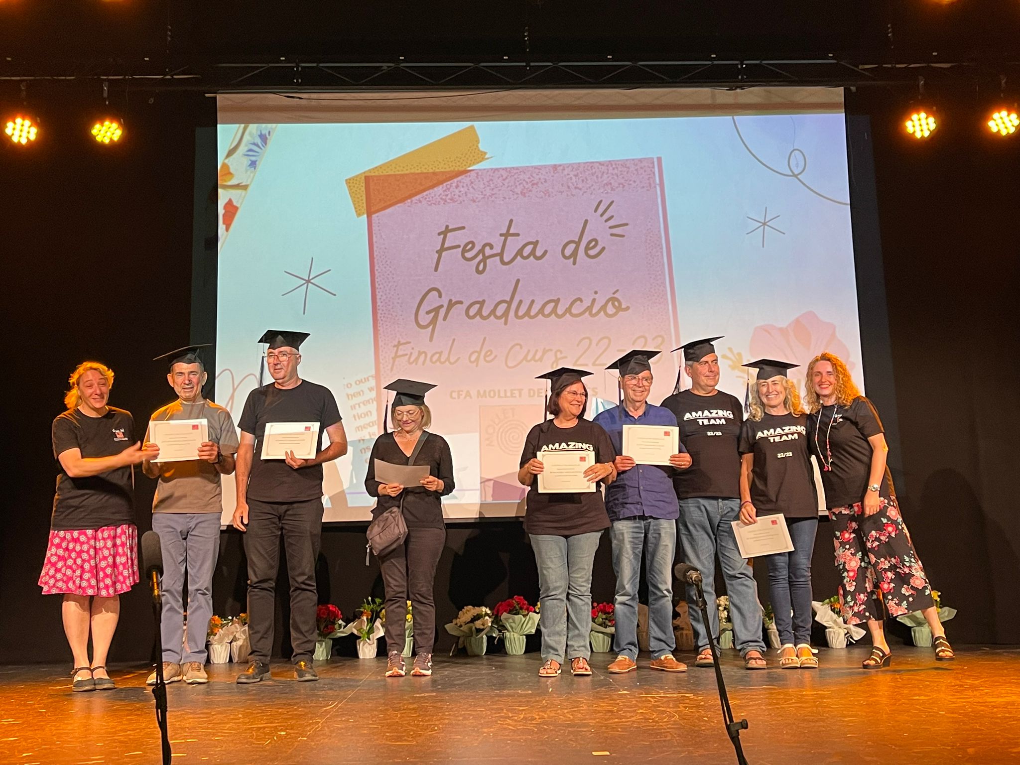 El dijous 15 de juny ens vam reunir al Mercat Vell de Mollet per celebrar l’Acte de Graduació dels alumnes que han acabat els estudis al CFA Mollet i vam tancar el curs amb una gran festa per part de l’alumnat i professorat.