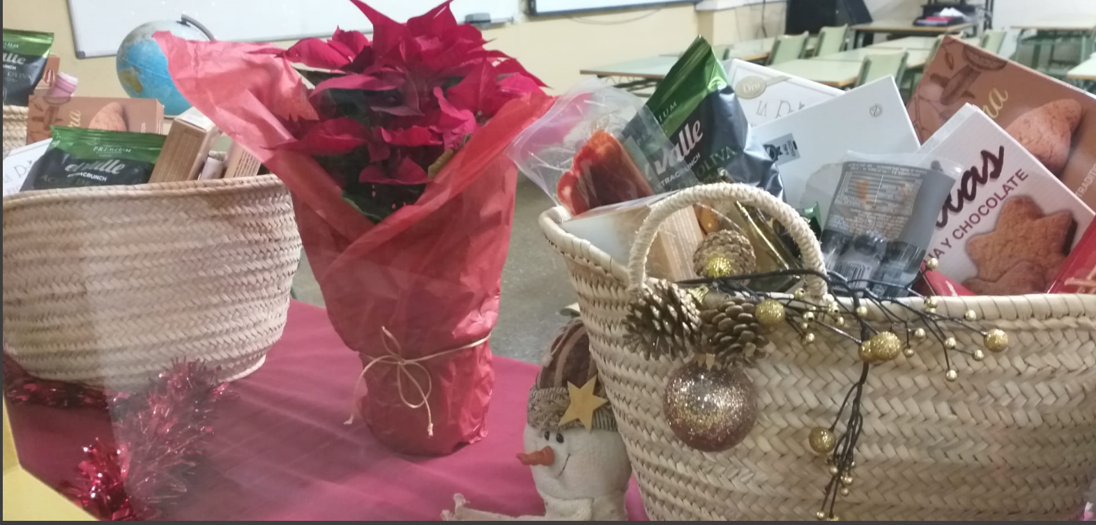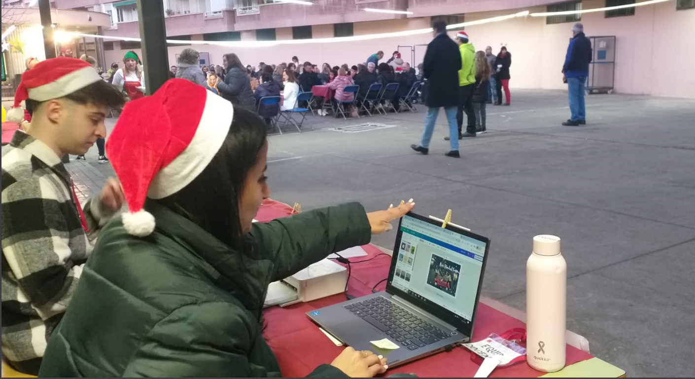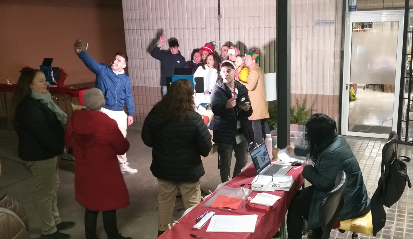 Es van sortejar tres lots de regals en tres bingos i tres paneres en els rascas, també vam berenar un tros de coca i xocolata. En la secció de photocoll es podien crear postals nadalenques d’amics i família.