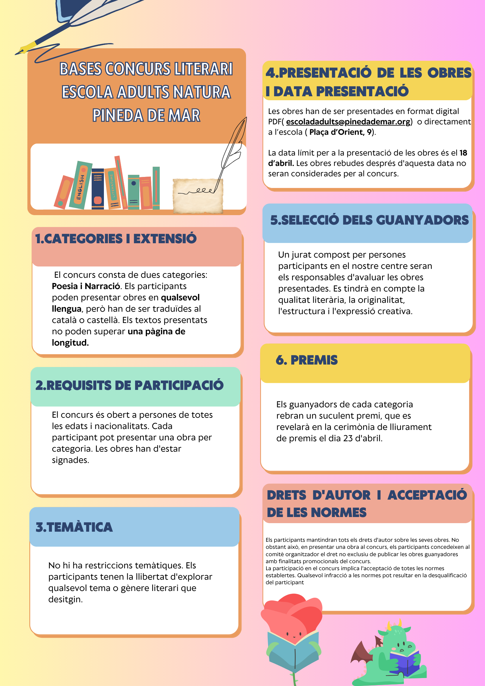 Concurs de Sant Jordi 2024 Feu un comentari / Per admin / 17/04/2024 / General / Festa, Sant Jordi Vols paticipar en el concurs que ha organitzat l’escola d’adults? Et deixem les bases del concurs