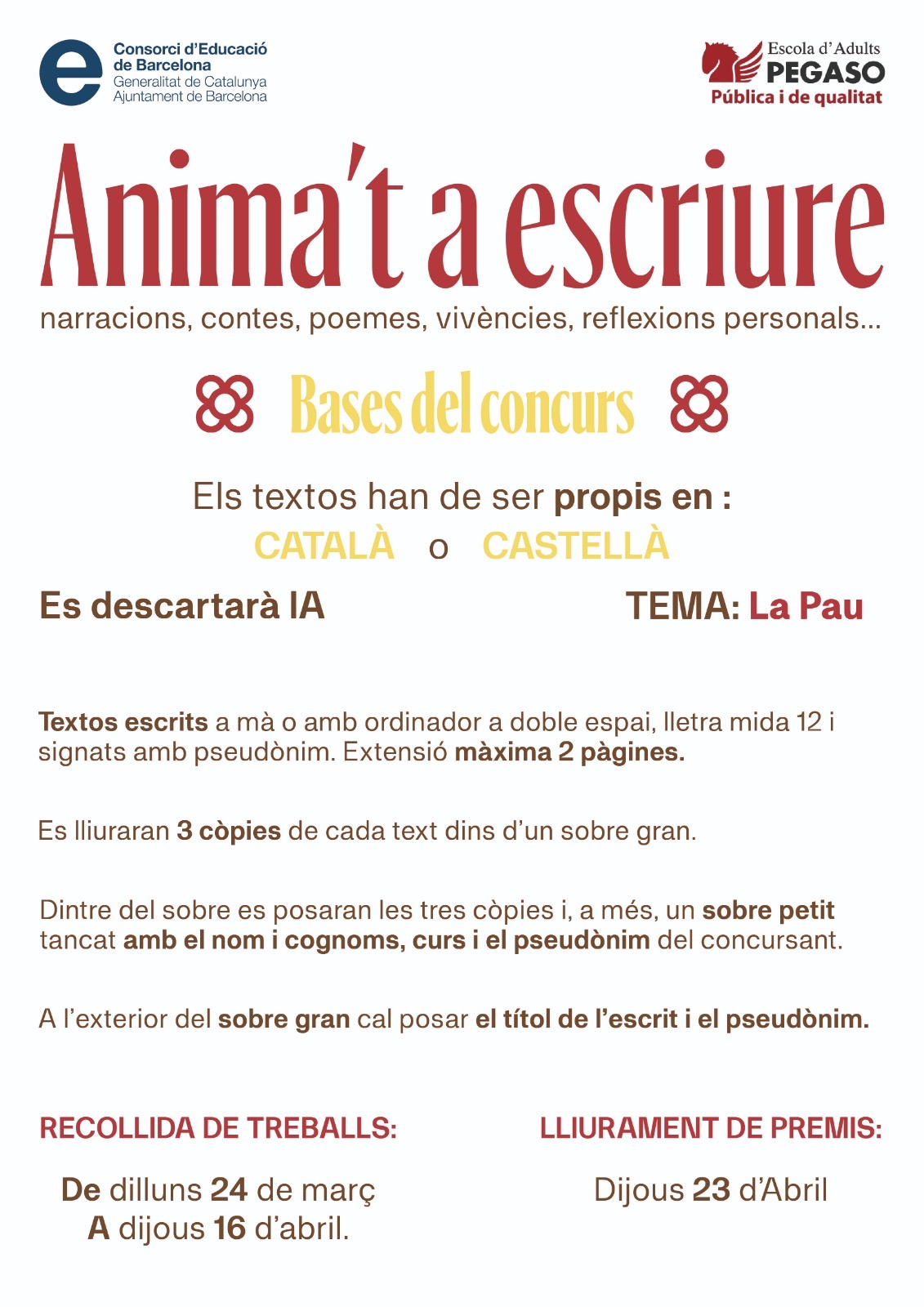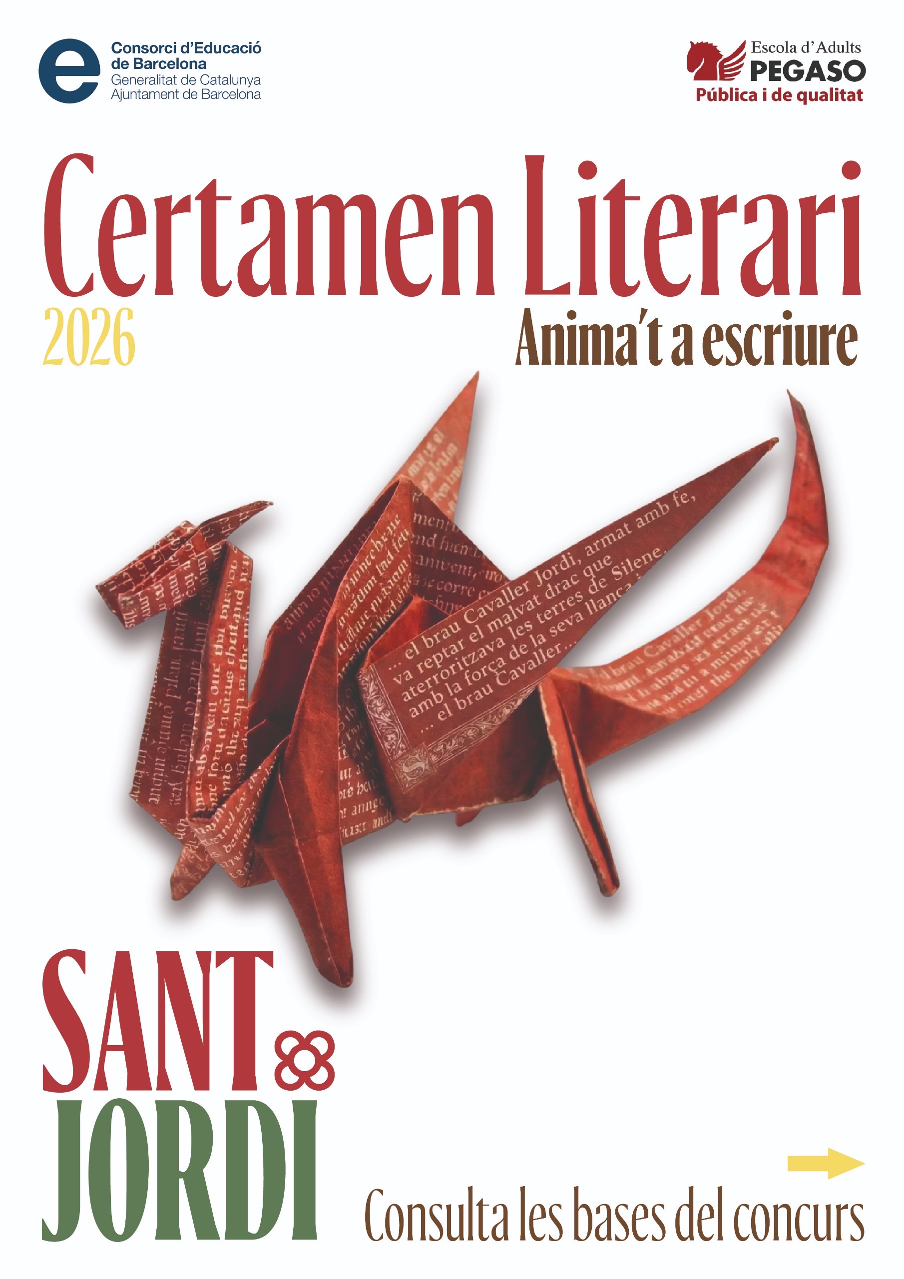 Aprofita les vacances de Pasqua per escriure! Participa al certamen literari de Sant Jordi de CFA Pegaso (23abril2026)Per admin / 02/04/2026 / Tauler de publicacións