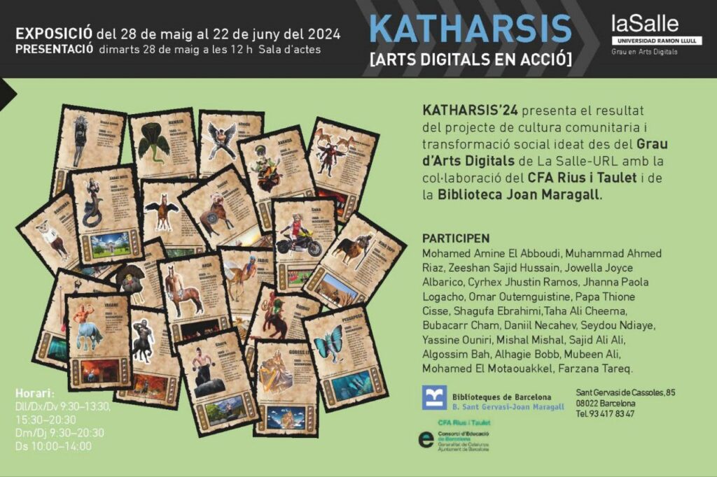 KATHARSIS’24 presenta el resultat del projecte de cultura comunitaria i transformació social ideal des del Grau d’Arts Digitals de La Salle-URL amb la col·laboració del CFA Rius i Taulet i de la Biblioteca Joan Maragall.