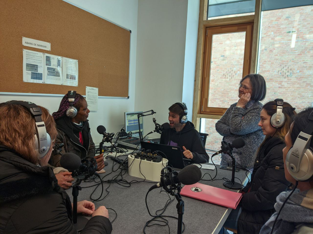 Després d’escoltar-me amablement en una primera trobada, la membre de la Comissió gestora de Ràdio Farró, Maria Goretti Mas, ens va convidar a visitar amb l’alumnat de GES 2 el petit estudi de ràdio i conèixer com preparar i gravar posteriorment un programa de ràdio en format podcast. Val a dir que el grup de GES 2 està acabant els seus estudis de Secundària obligatòria i com a tal se li demana acabar amb el nivell B2 de català, tot i la gran diversitat lingüística del grup.