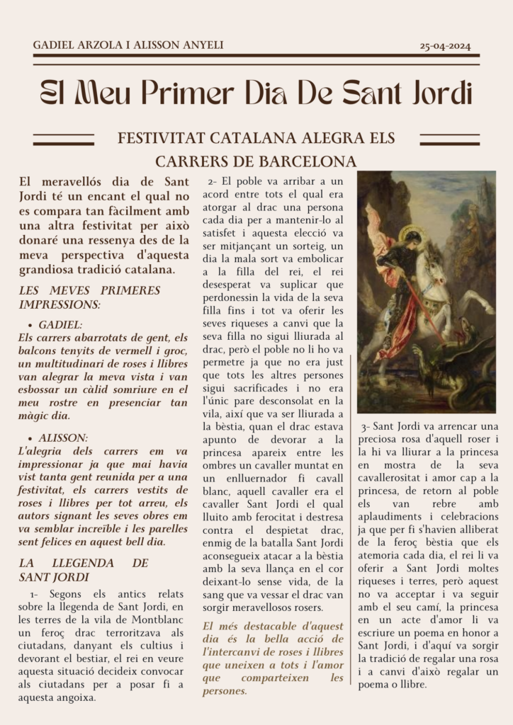 Sant Jordi vist per l’alumnat nouvingut!!