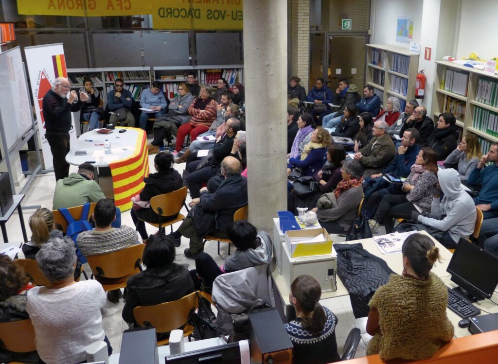 Parlem clar: el model d’educació d’adults ha estat basat en la instrucció i no en l’aprenentatge, en professorat que aplica o administra l’educació i allunyat de la funció d’educadora social per limitar-se al rol del treball a l’aula, amb models curriculars tancats i amb poca relació amb la realitat social, i dins una organització burocràtica, rígida i estandarditzada. Aquest model s’allunya d’una resposta que tingui present la flexibilitat i la immediatesa, que vinculi el desenvolupament de les activitats de la vida quotidiana des d’una perspectiva comunitària. A les nostres comarques, van néixer experiències reals i alliberadores: projectes d’alfabetització, el treball amb joves que cercaven una primera ocupació, les escoles taller (que superaven la dicotomia treball manual-treball intel·lectual), l’acollida i formació de les persones immigrades d’origen estranger, els cercles de conversa, les activitats contra l’analfabetisme polític … Un bagatge de pràctiques creatives i constructives, d’oferta educativa flexible, diversa i adaptada a cadascú. Experiències educatives de mirada global n’hi ha, i han estat obertes per ser compartides i exposades, però institucionalment han estat menyspreades. No ha encaixat el model social i comunitari que es propugnava des de les bases.