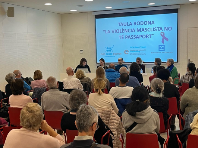 Per desarticular aquest engranatge haurem de prendre consciència dels seus mecanismes i fer molta pedagogia per combatre’l. El dijous dia 24 de novembre, juntament amb “Món sense guerres ni violències,” vam organitzar una taula rodona, els membres de la qual ens van convidar a reflexionar sobre les violències exercides contra les dones en diferents contextos socio-polítics i diversos recorreguts vitals i/o professionals. Ens van acompanyar representants de l’activisme o la primera línia política, l’administració i la ciutadania d’arreu del món per ajudar-nos a pensar, visibilitzar i problematitzar la violència masclista des dels seus múltiples àmbits, tant en l’esfera pública com en l’esfera privada.