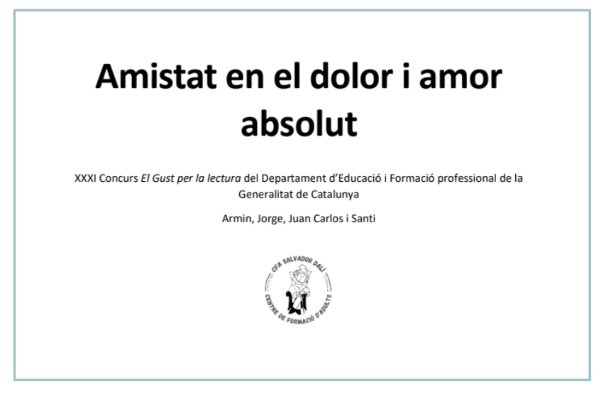 Com ja ha succeït durant els últims cursos acadèmics, la nostra escola es presenta novament al Concurs El gust per la lectura, organitzat pel Departament d’Educació i Formació Professional de la Generalitat de Catalunya. En aquesta XXXI edició, l’alumnat de GESO 2 ha llegit i treballat a l’aula una antologia poètica: “Tu i jo. Trenta-dues maneres de dir-ho”, que recull versos de diferents poetes i poetesses com Clementina Arderiu, Gerard Vergés o Walt Whitman.