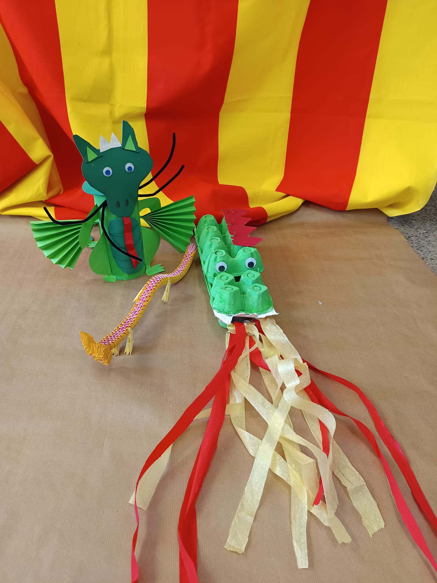 Aquest mes d’abril, l’escola s’ha omplert d’un esperit ben especial: comença el primer Concurs de Dracs de Sant Jordi! I ho fa amb una gran acollida i molta il·lusió per part de l’alumnat. Els primers dracs ja han començat a arribar —i a instal·lar-se discretament al despatx de mestres—, convertint aquest espai en un petit museu improvisat de creativitat.