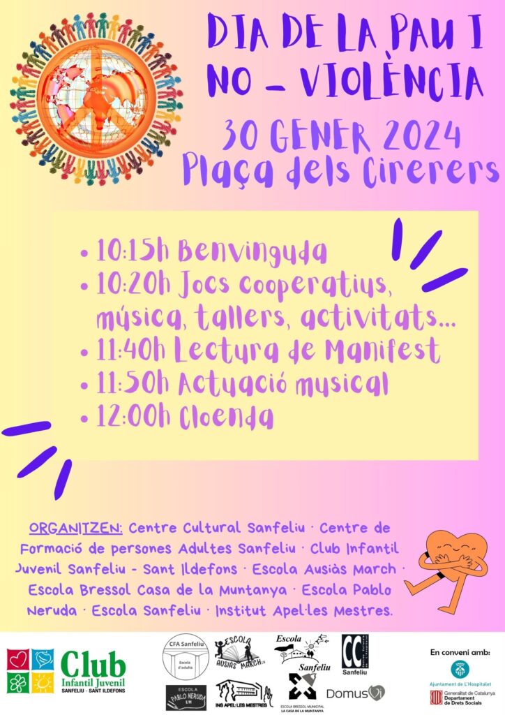 30 de gener, dia de la pau i la no violència admin23/01/24 Benvolguda comunitat educativa, Us convidem a assistir als actes que hem programat per celebrar el Dia de la Pau i la No-violència. No us ho perdeu, us hi esperem!