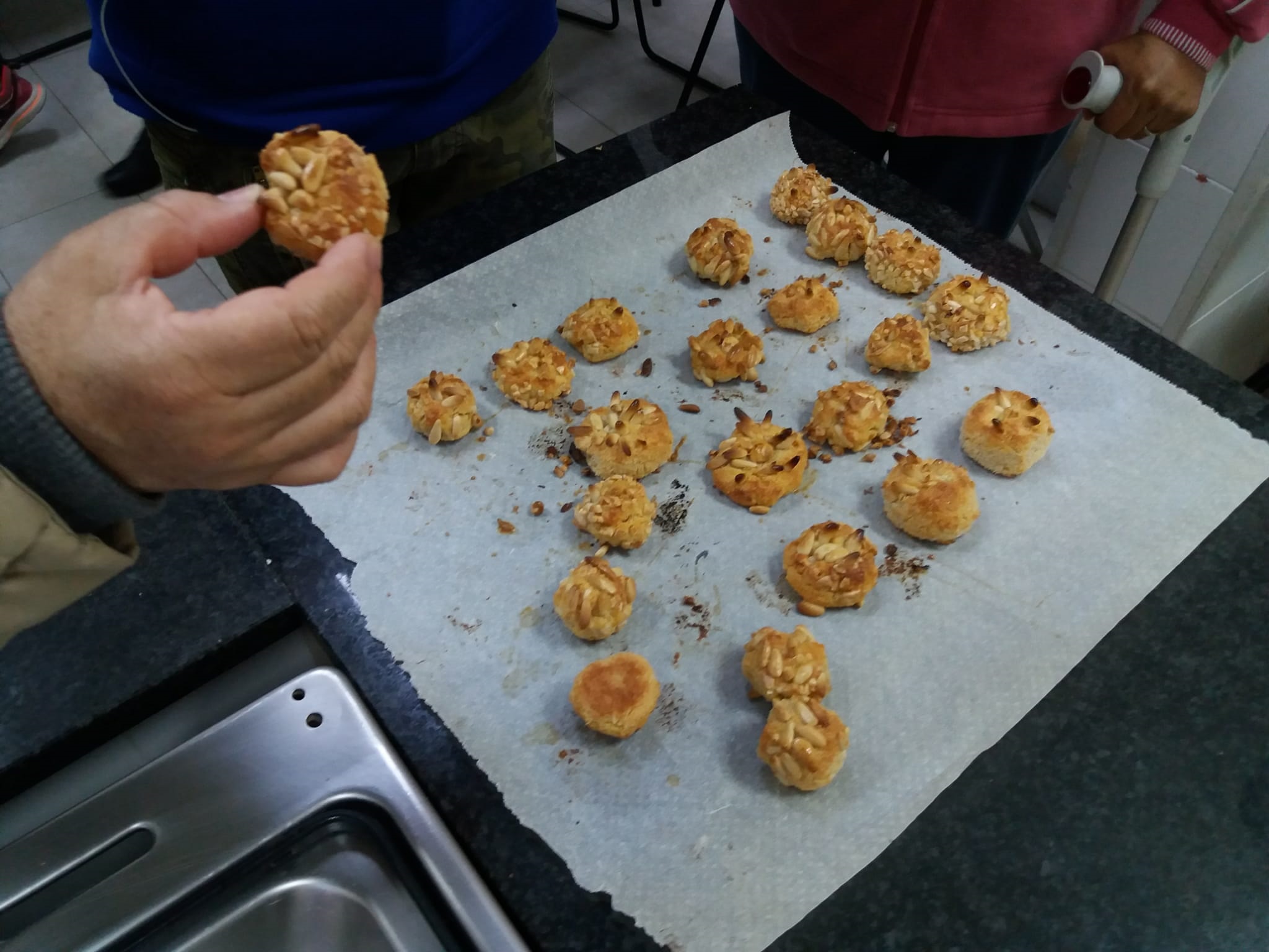 El passat 11 de novembre l’alumnat de Català A1 i GES1 van escriure conjuntament receptes de panellets i després els van elaborar a la cuina de l’Ateneu de Sant Cugat, amb l’ajuda de la Tònia i la Pilar, professores voluntàries del CFA Sant Cugat.