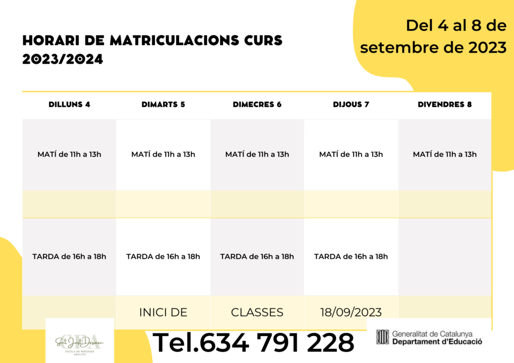 Horaris matrícula curs 2023-24