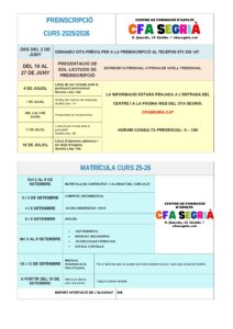 També podeu consultar el calendari 2025-2026 de preinscripció i matrícula aquí.