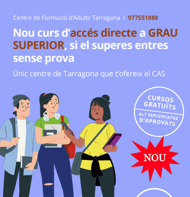 30/05/25Al CFA Tarragona ja estem preparats per continuar acompanyant-te en el teu camí formatiu. T’animem a consultar els nous horaris dels cursos per al curs vinent. Oferim una gran varietat de formacions totalment gratuïtes i reconegudes pel Departament d’Educació.