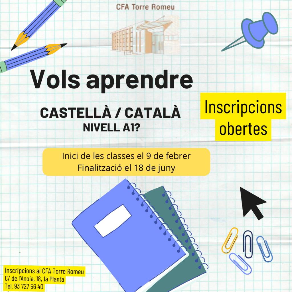 Inscripcions obertes per als cursos de Català i Castellà (nivell 1) Documentació necessària: Fotocòpia DNI / NIE / passaport.