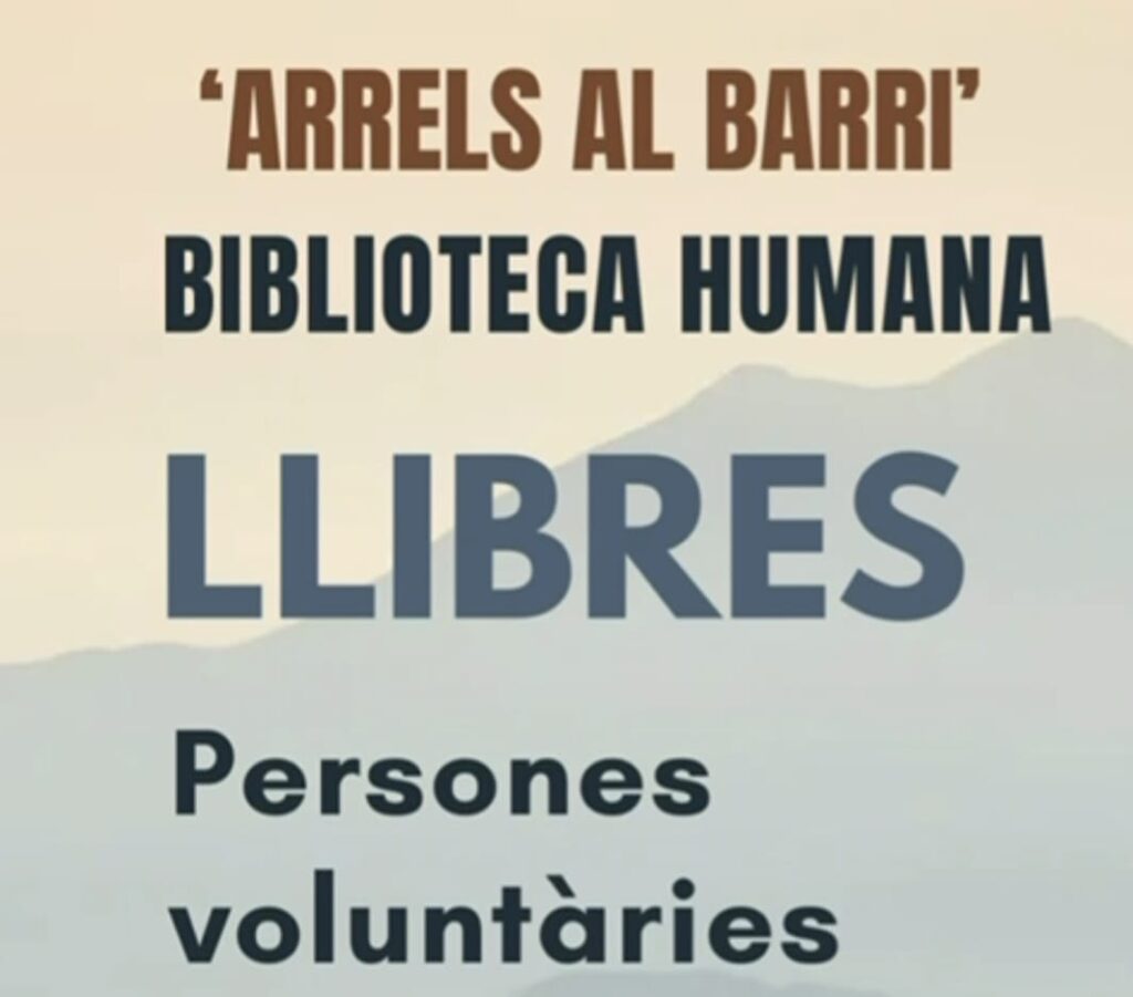 Persones que són llibres. Una iniciativa que es fa al barri molt interessant. Si estàs interessat en ser llibre o biblotecari posa’t en contacte amb l’escola i t’explicarem el projecte.