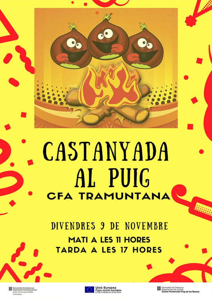 Al CFA Tramuntana hem celebrat la castanyada! Durant tota la primera setmana de novembre, mestres i alumnat hem decorat el passadís del nostre centre, amb pòsters, murals i castanyes. Finalment, el “nostre” castanyer ha cuit un munt de castanyes que ens han fet passar la fred.