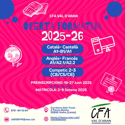 Aufèrta formatiua deth nòste centre entath cors 2025 2026 admin20/05/25 Aufèrta formatiua cors 2025 2026… Llegeix més»