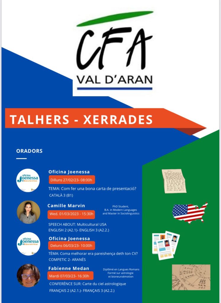 Charrades en CFA Val d’Aran admin17/02/23 Enes pròplèu dies realizaram un cicle de confències en CFA, se vos shauten podetz participar enes que volgatz, vos demoram!